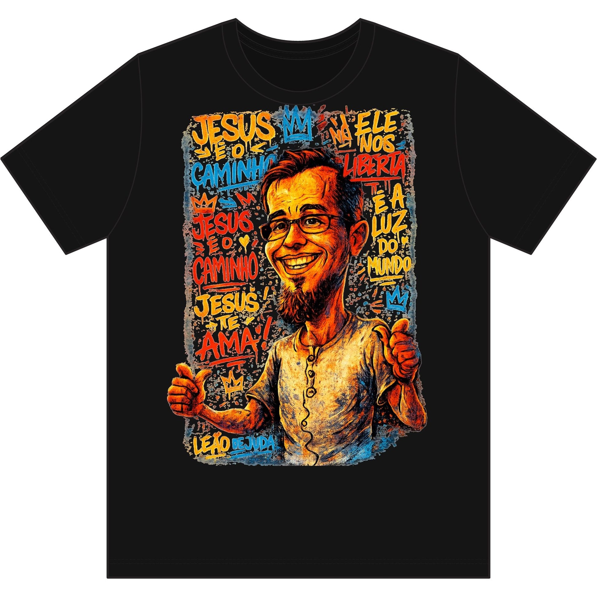 Camiseta com retrato caricatural — Estampa colorida de Azimur sorridente em estilo grafite